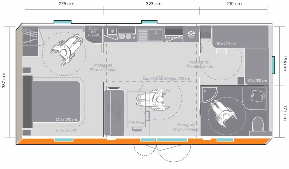 This mobile home has been designed for people with reduced mobility or with a handicap.